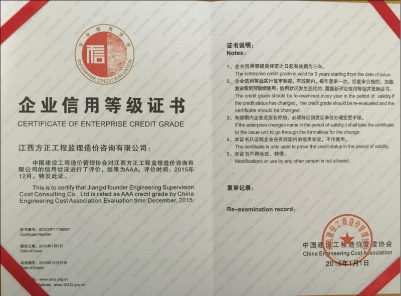 江西方正工程監(jiān)理造價(jià)咨詢有限公司于二OO三年五月在南昌市工商行政管理局注冊(cè)(注冊(cè)號(hào):360100210024211),成立的有限責(zé)任公司,先后取得建設(shè)部及江西省建設(shè)廳頒發(fā)的建設(shè)施工工程造價(jià)咨詢企業(yè)資質(zhì)、招投標(biāo)代理機(jī)構(gòu)資質(zhì)、工程監(jiān)理資質(zhì)及江西省財(cái)政廳頒發(fā)的采購代理資質(zhì),是專門從事工業(yè)與民用建筑工程造價(jià)咨詢、工程建設(shè)招投標(biāo)代理、工程監(jiān)理及采購代理的公司。